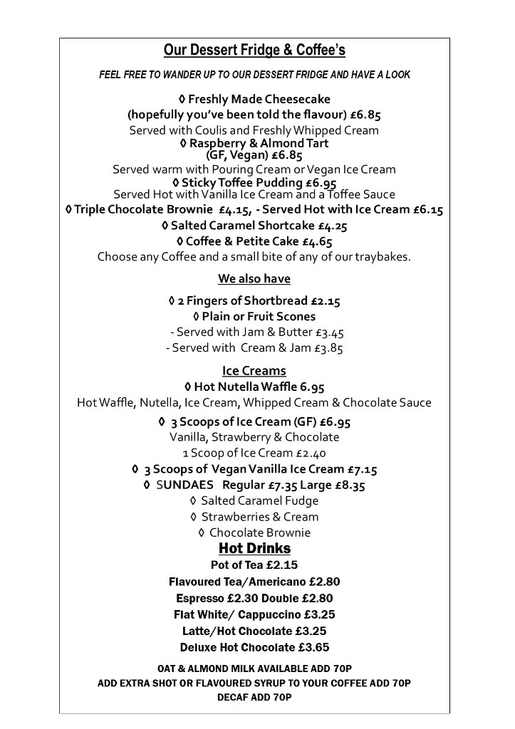 All served with ice cream or homemade shortbread. Ask for a free side of veg to any of the kids dishes.